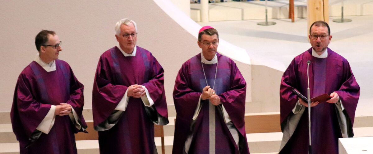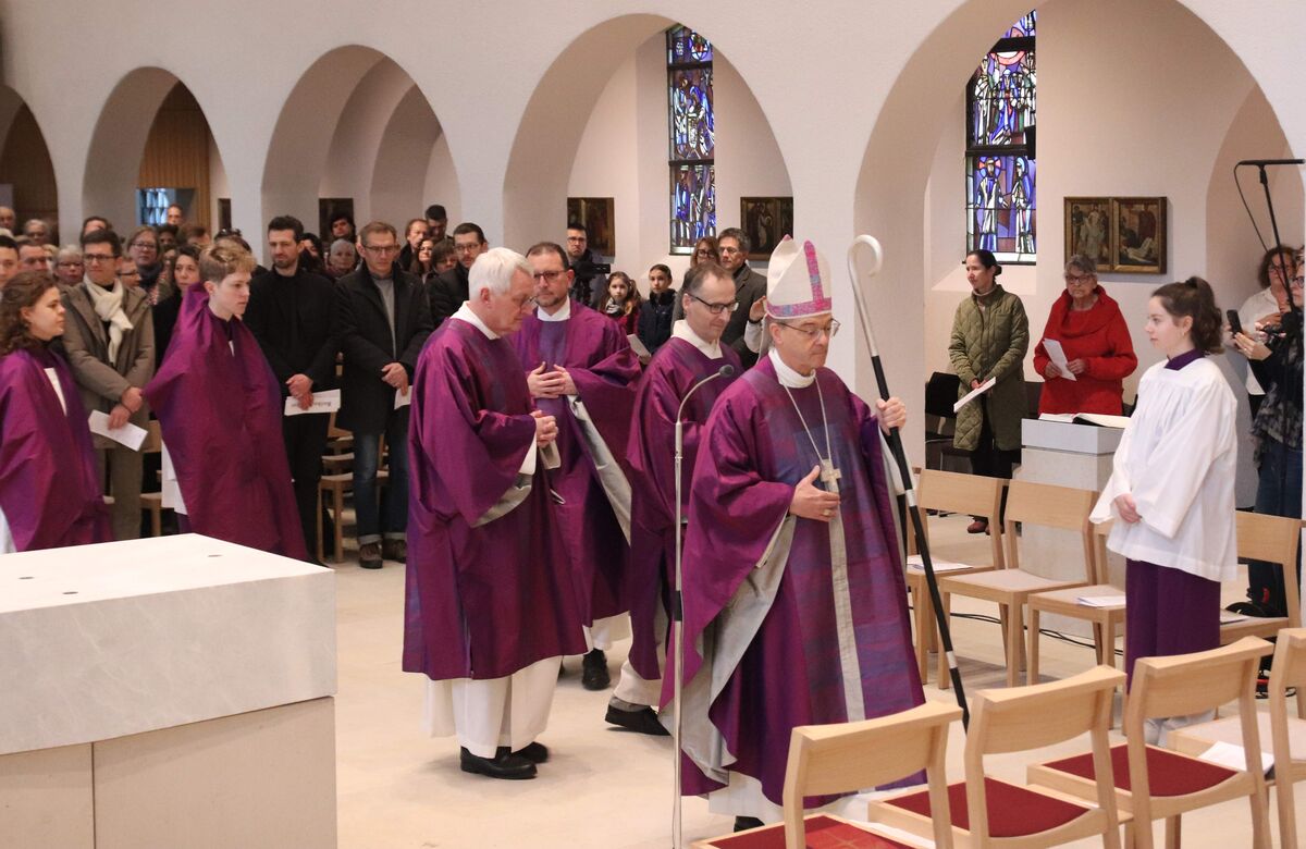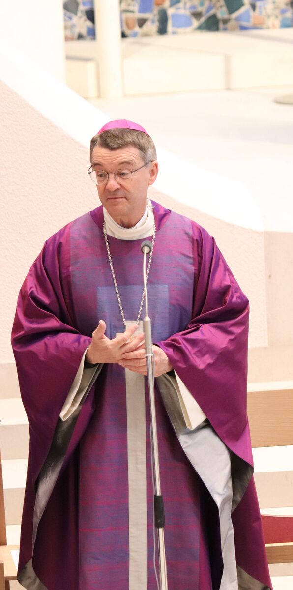 In seiner Predigt zeigte sich Bischof Krämer dankbar und erfreut über den neu gestalteten kirchlichen Ort. Zugleich richtete er den Blick nach vorn. „Auch wenn wir künftig mit weniger Mitteln und Ressourcen auskommen müsse, können wir die Herausforderungen mit Zuversicht angehen. … Er hoffe, dass Mariä Himmelfahrt zu einer Kraftquelle werde – für die Gemeinde, für den gemeinsamen Weg und für den gesamten Stadtbezirk.“